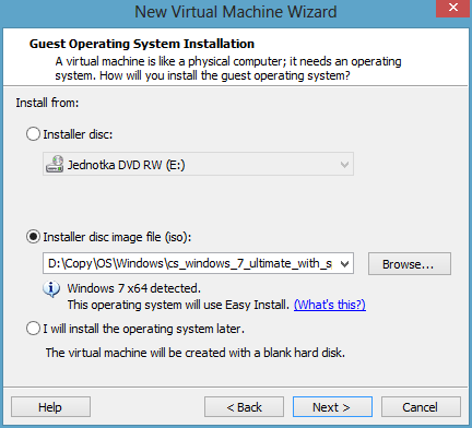 podle cílového systému, pro Windows 7 tedy přiřadí virtuálnímu stroji