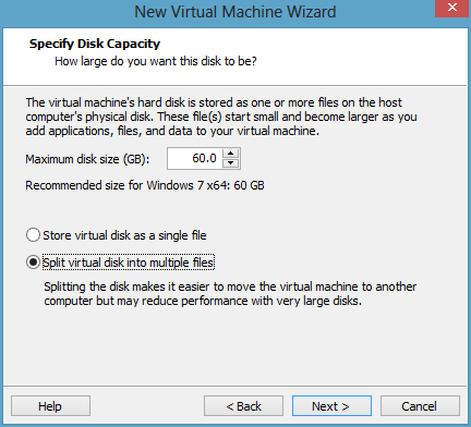 disk rozdělen na více souborů (Split virtual disk into multiple